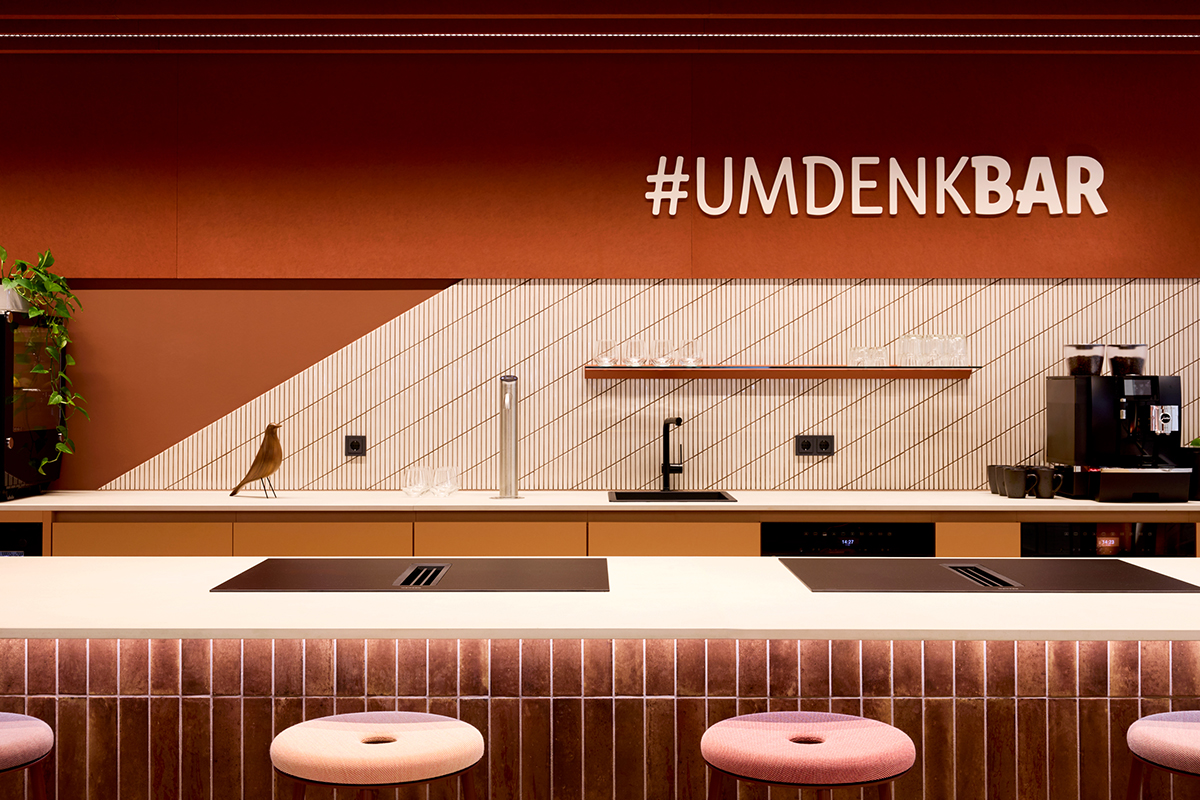 Die zentrale #UMDENKBAR verleiht der Umgebung eine narrative Note und transportiert den Gedanken des Wandels. Sie ist nicht nur Treffpunkt, sondern steht symbolisch für den Anspruch, Gewohntes zu hinterfragen und gemeinsam neue Perspektiven zu entwickeln: Begegnung als Impuls für den Fortschritt.